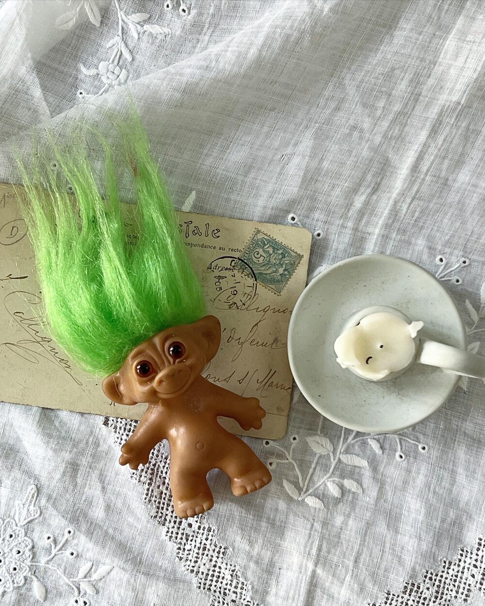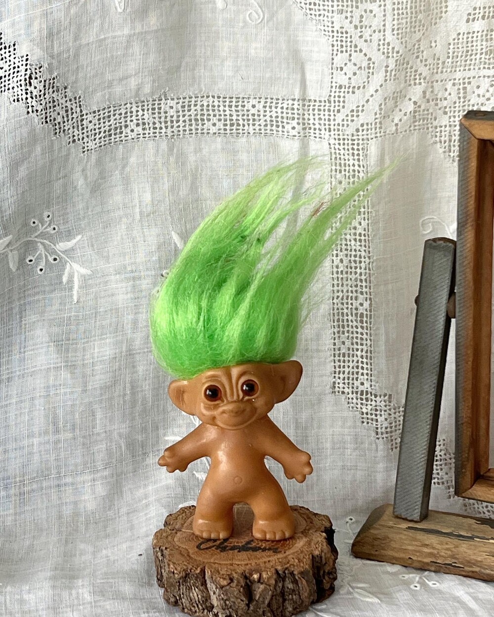 vintage Yellow Green hair rubber troll doll [빈티지 연두색 머리 고무 트롤]