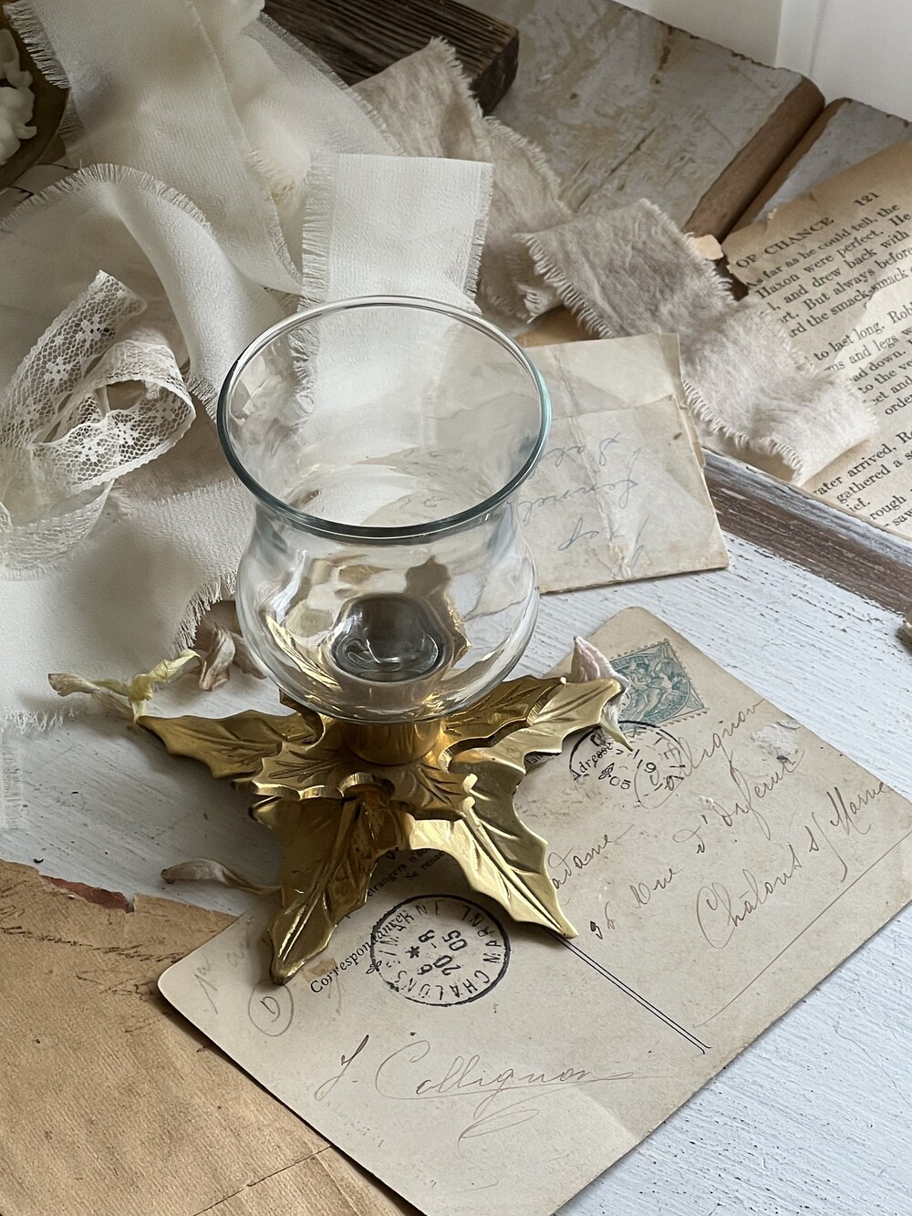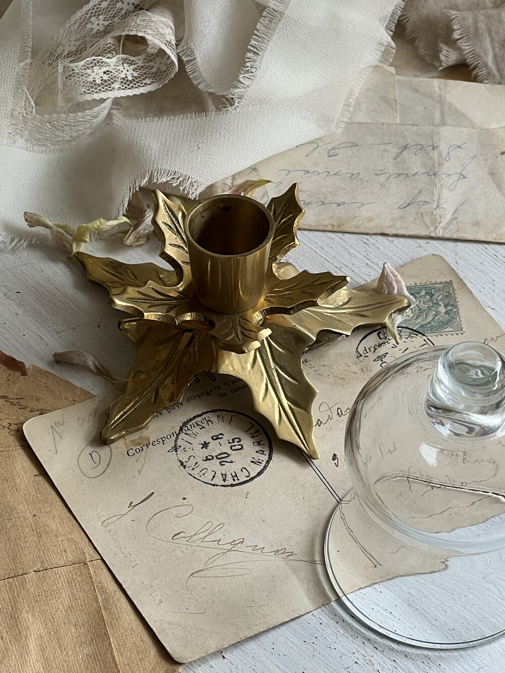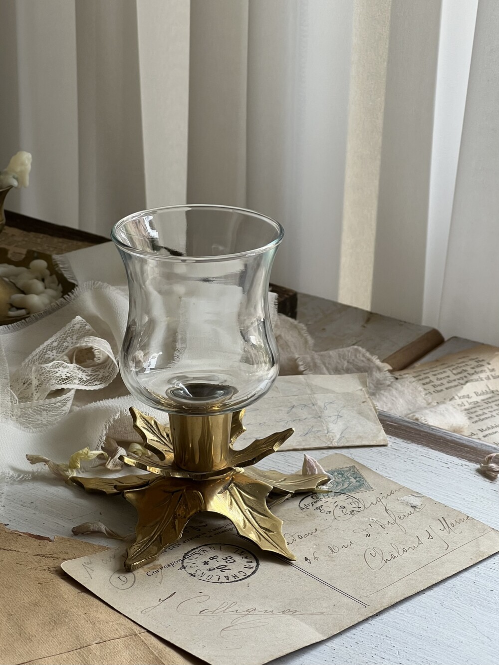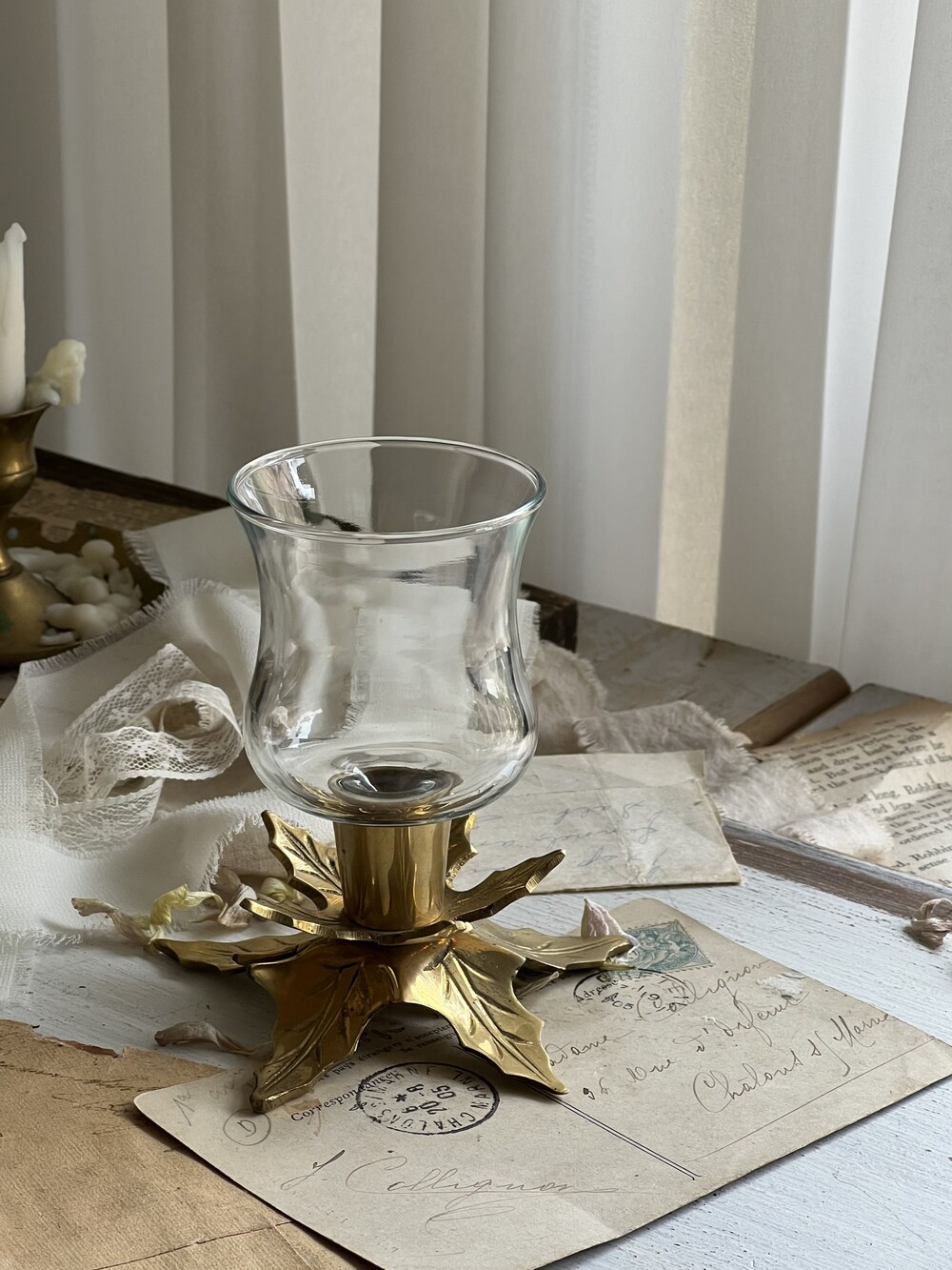 vintage brass flower candlestick set [빈티지 황동 꽃 촛대 세트]