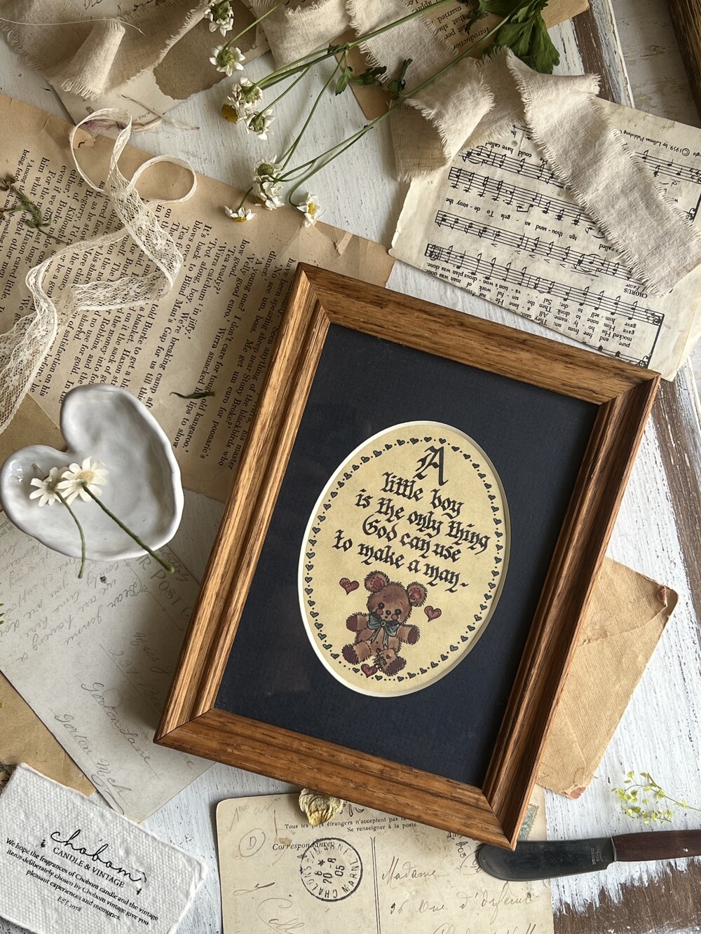 vintage teddy bear wood frame [빈티지 테디 베어 우드 액자]