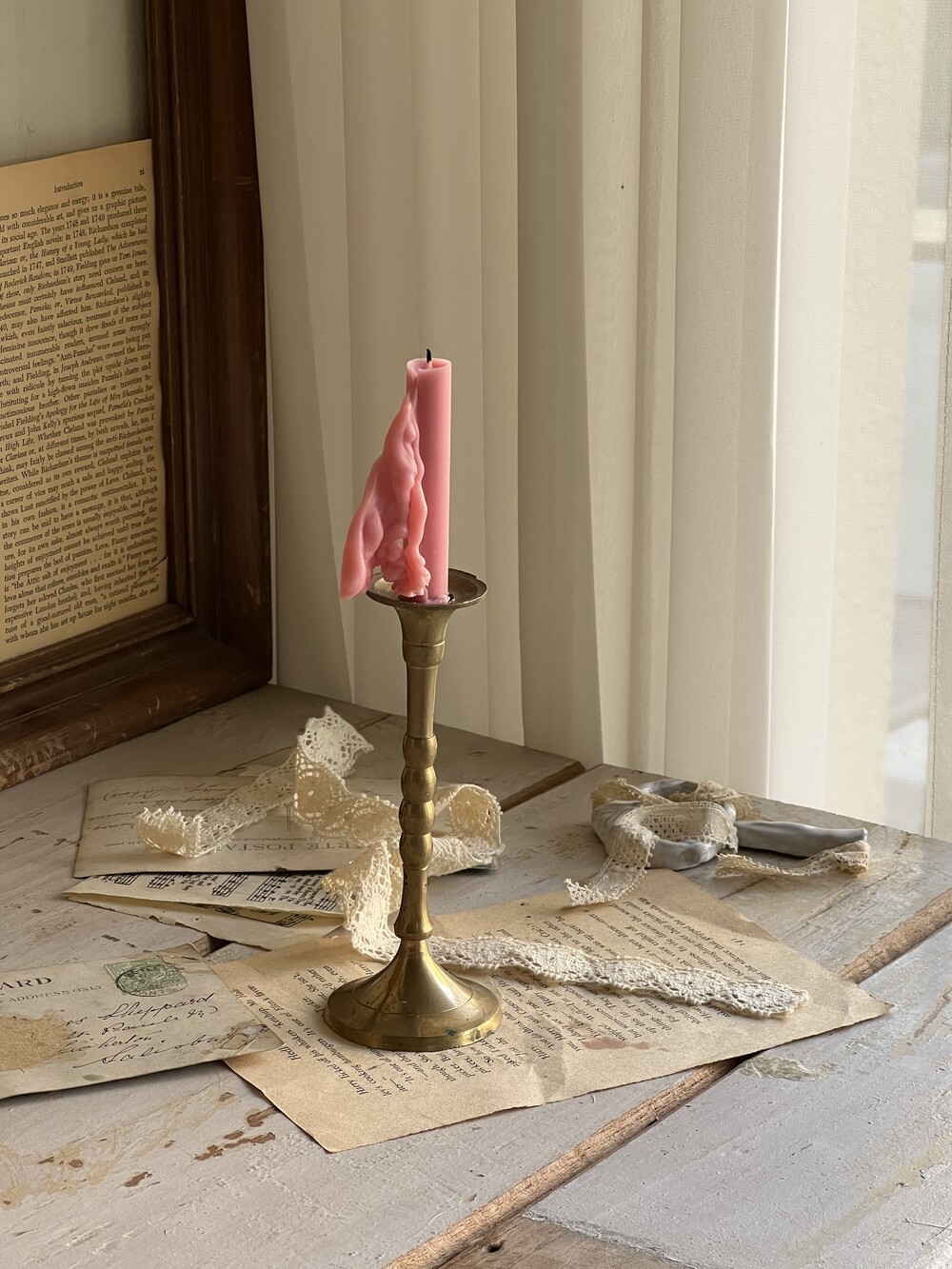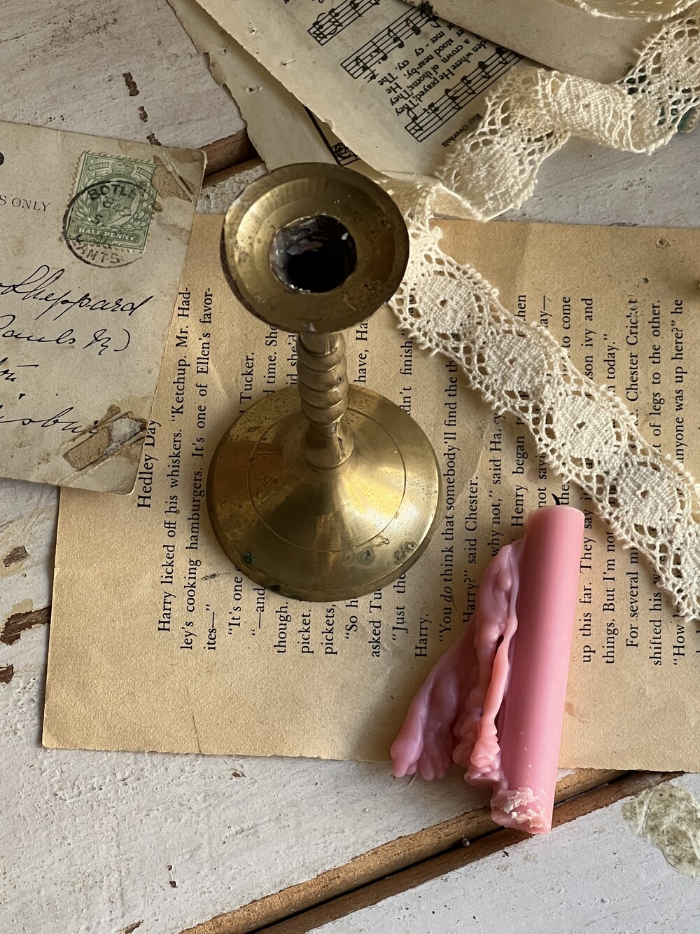 초지름 약 1.5cm가 들어가지만 점점 지름이 좁아지는 디자인의 빈티지 미니촛대로