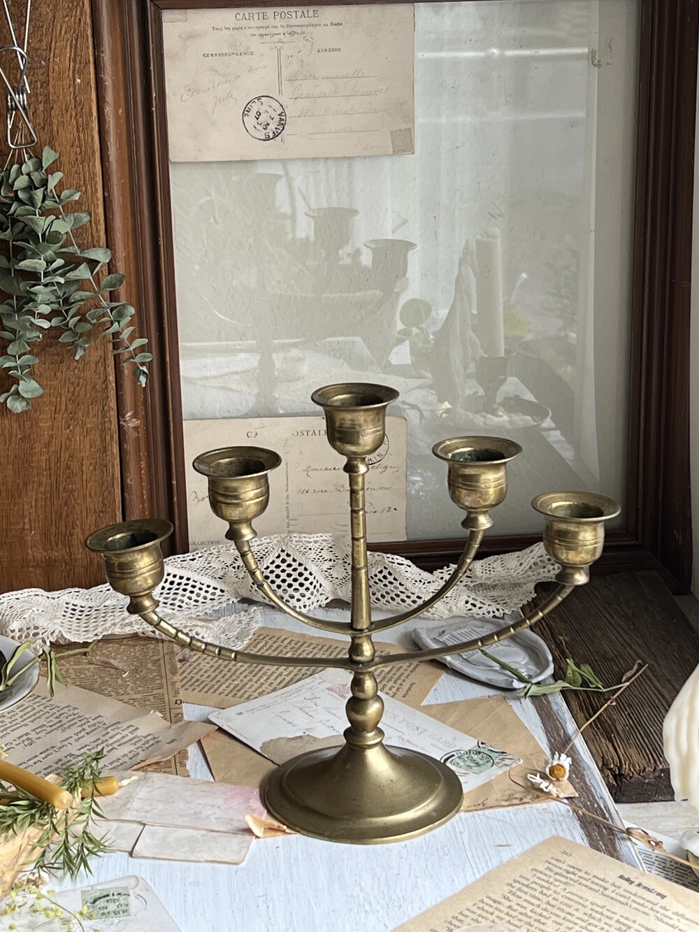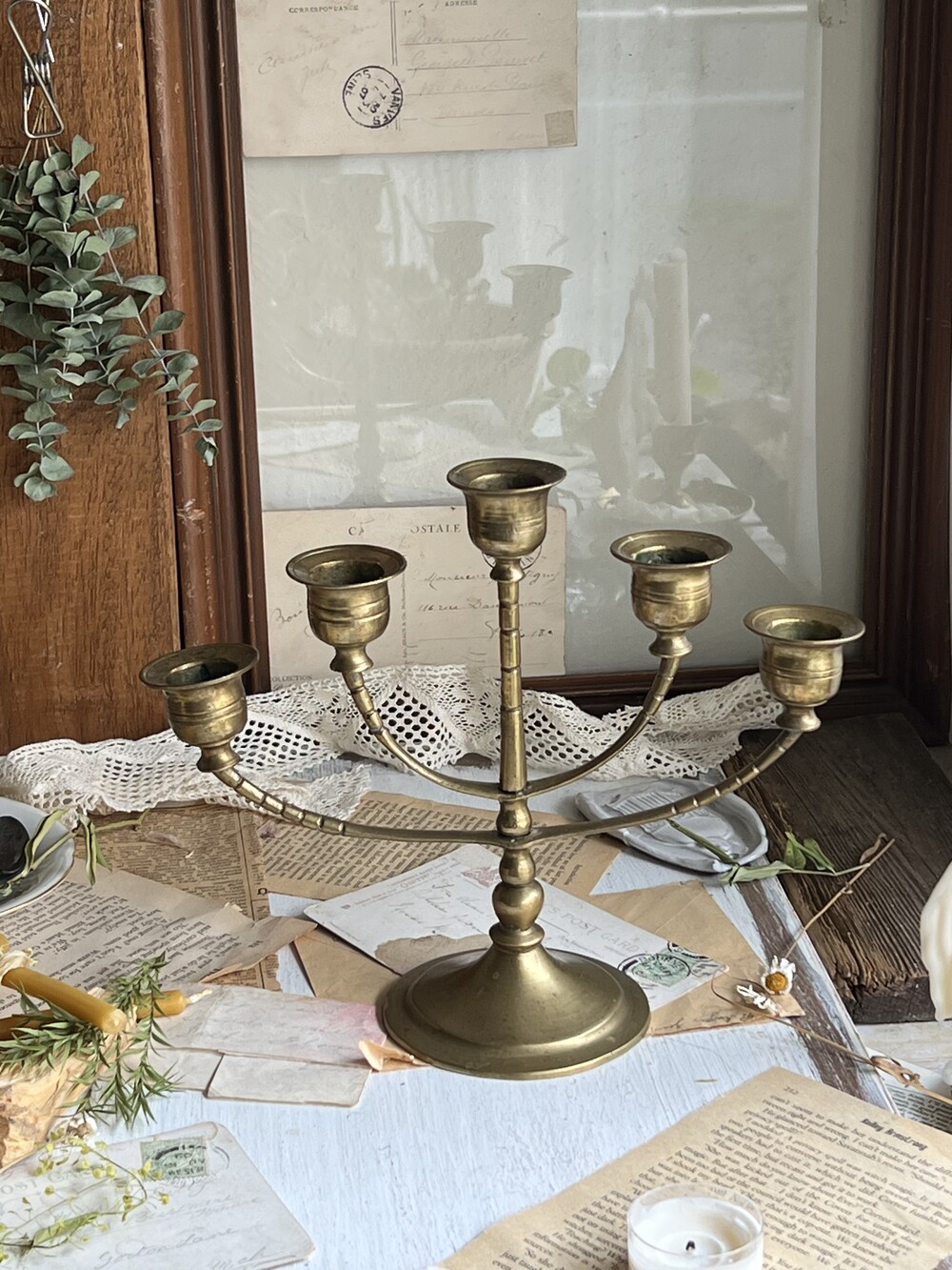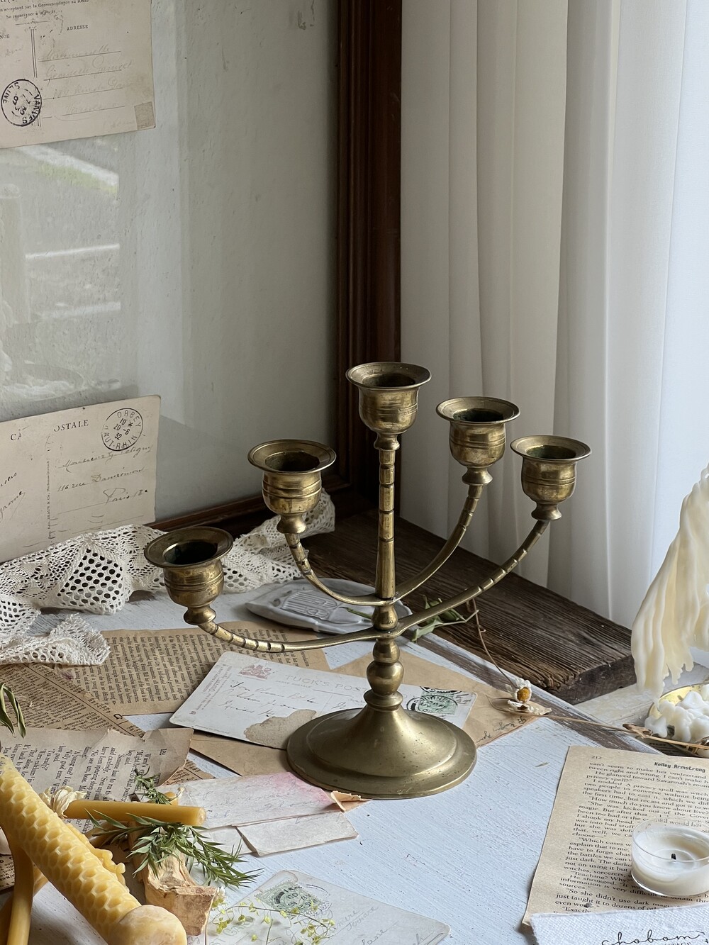 vintage brass 5-arm candelabra [빈티지 황동 5구 촛대]