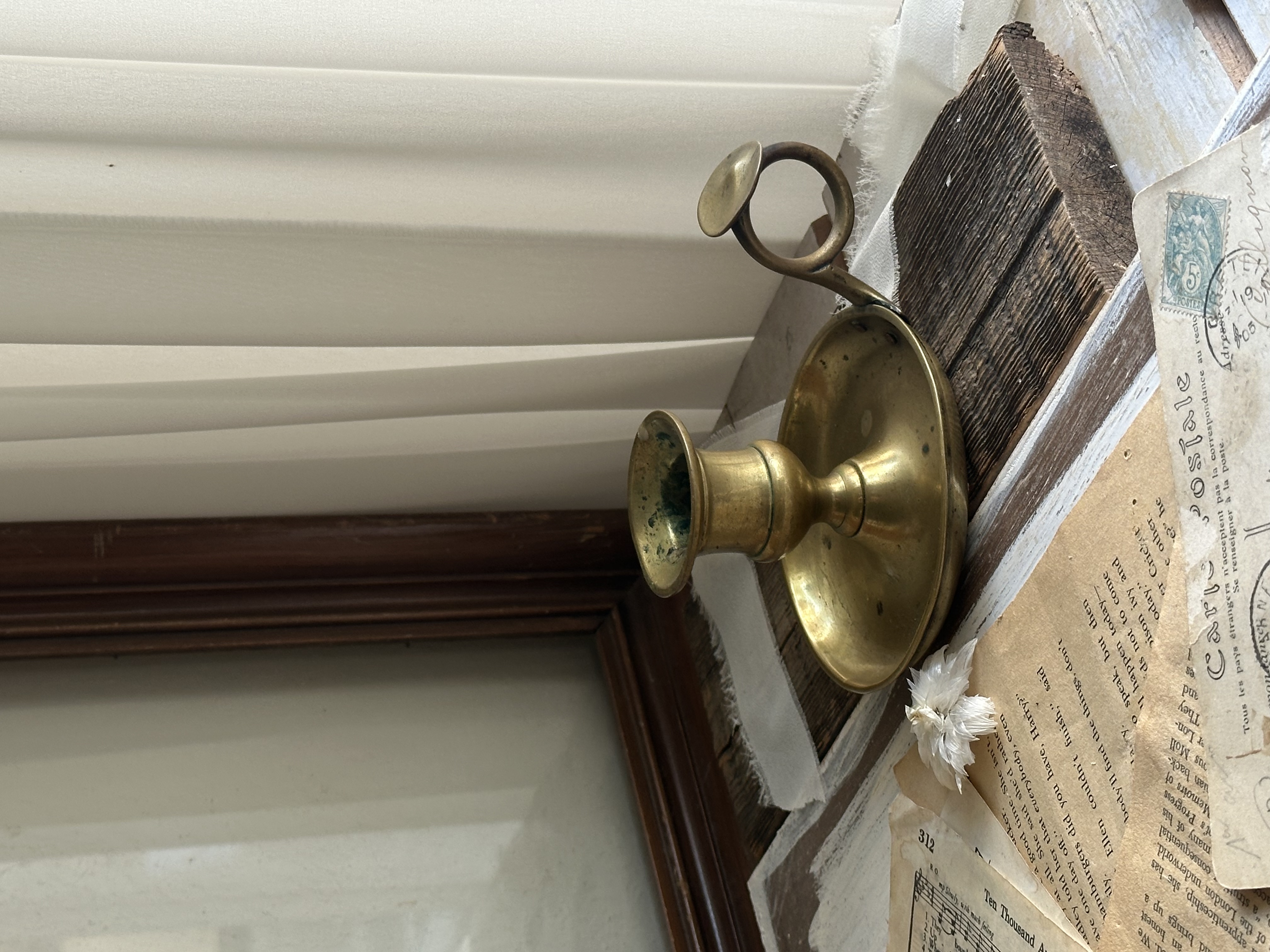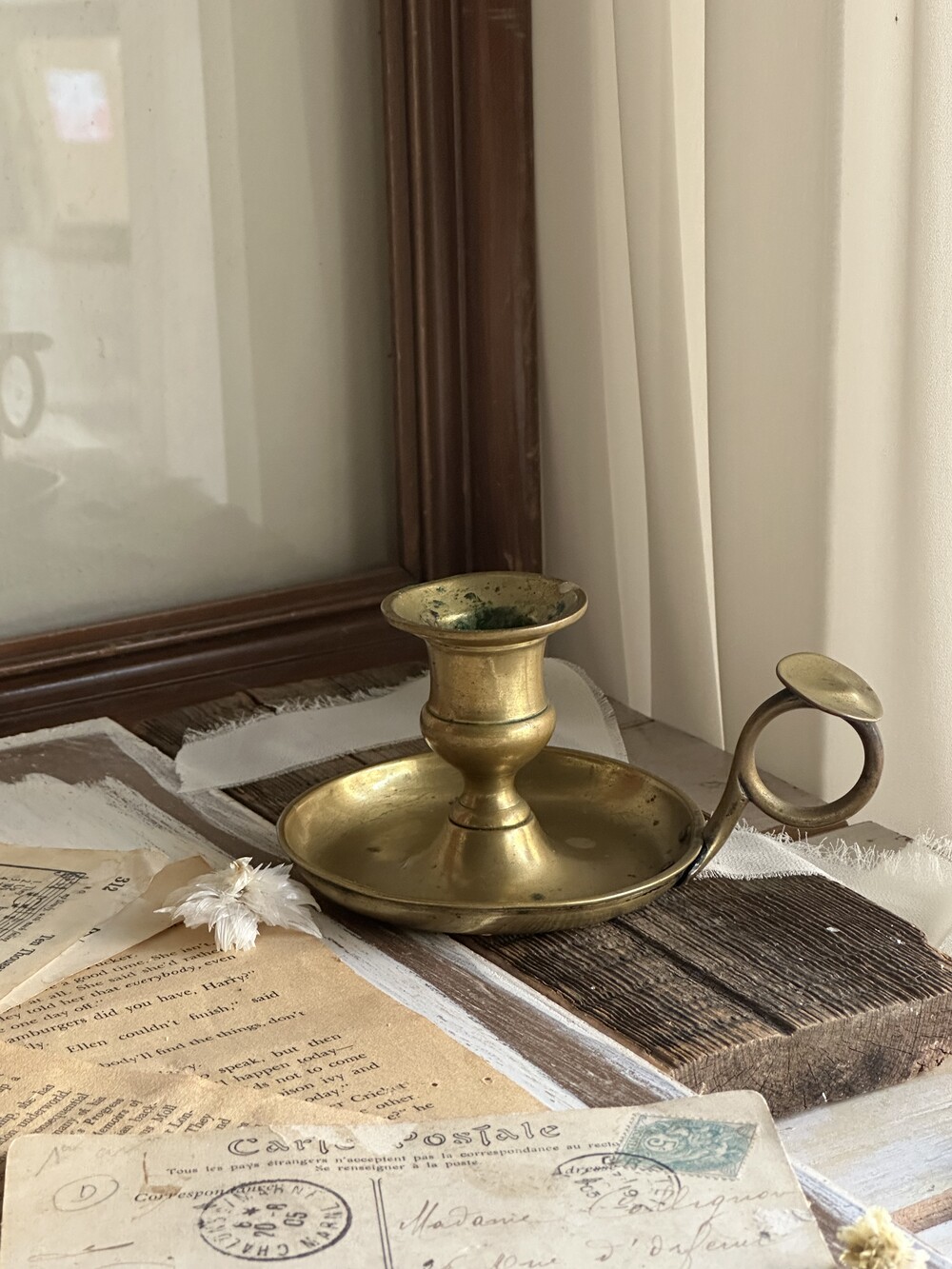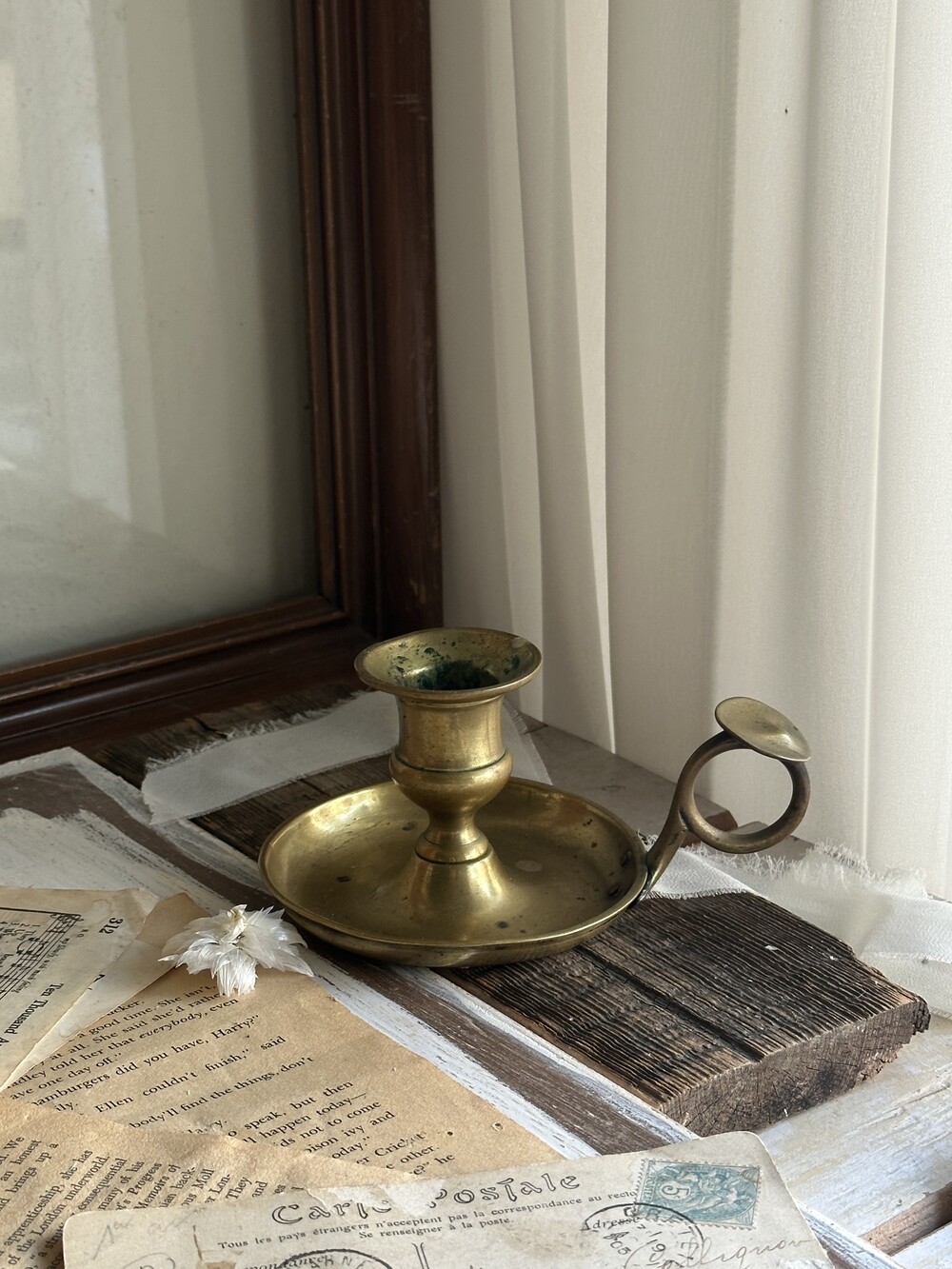 독일에서 바잉해 온 빈티지 황동 촛대입니다. 찌그러진 손잡이에 눈이 가 안데려올 수가 없었어요.