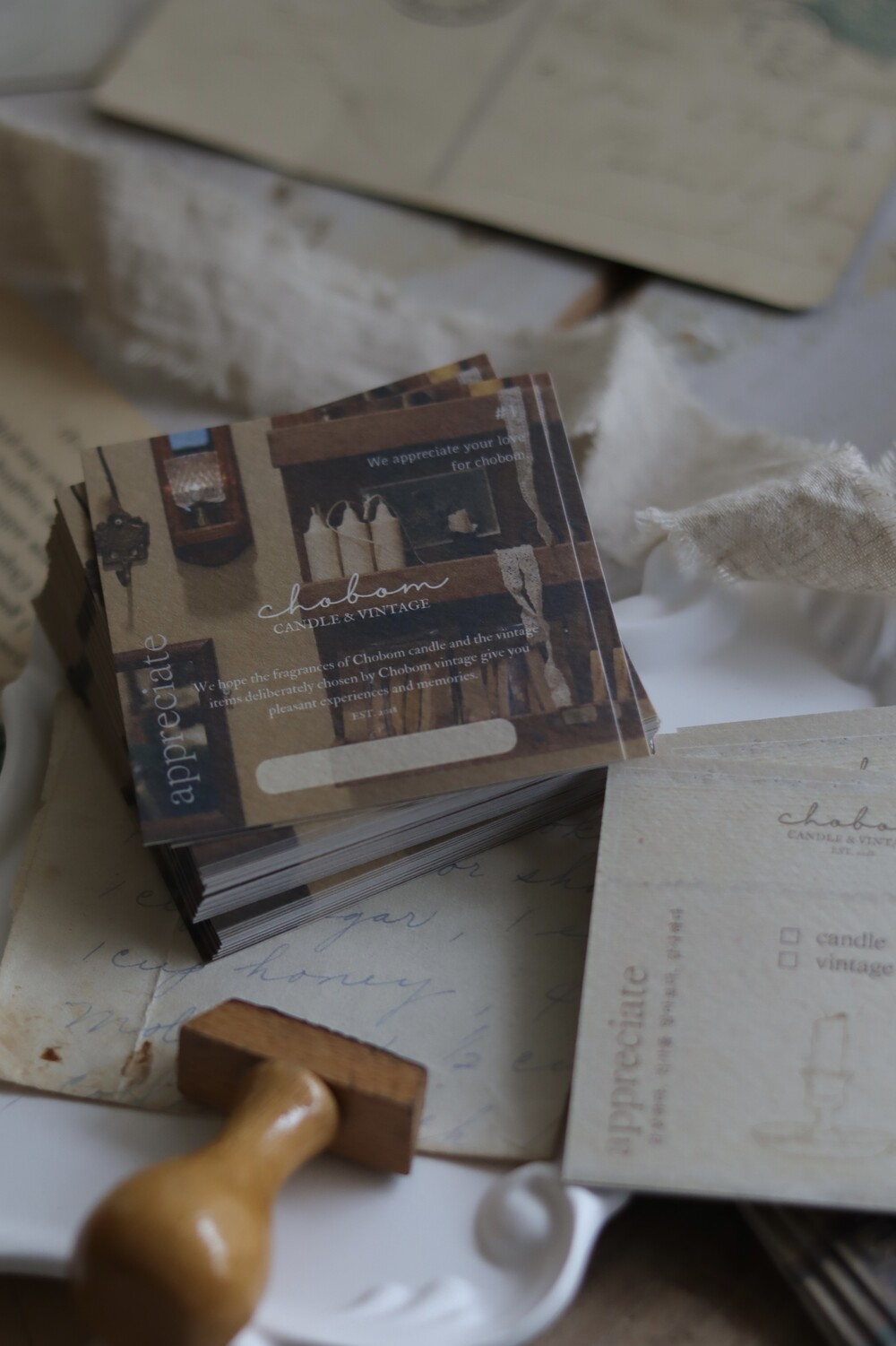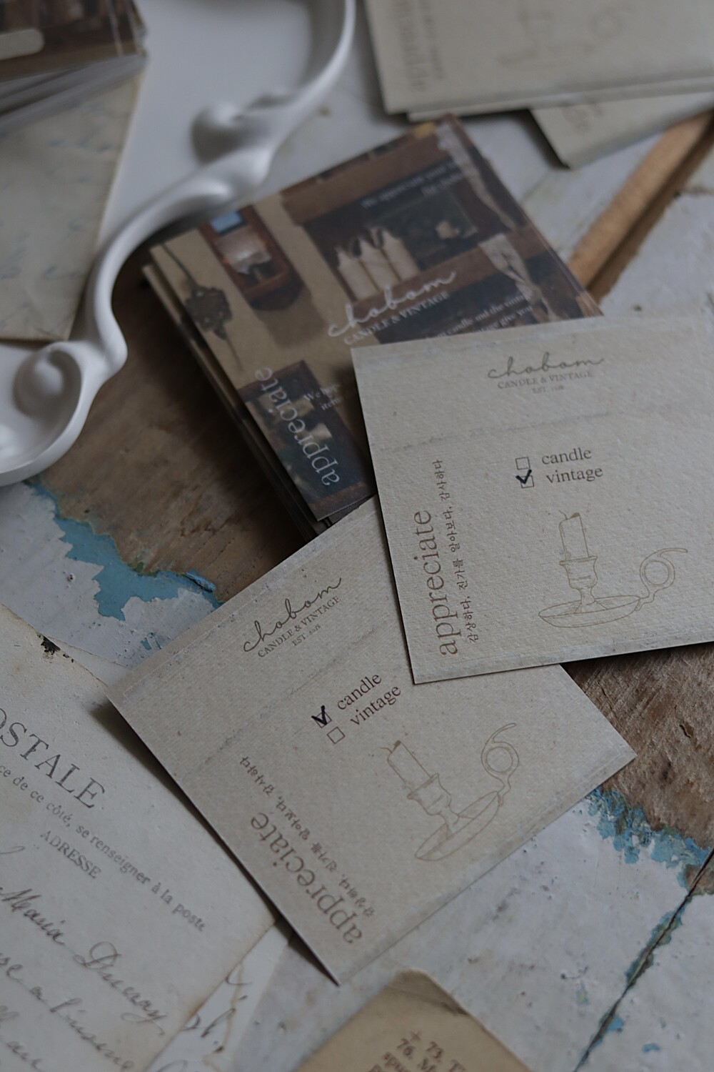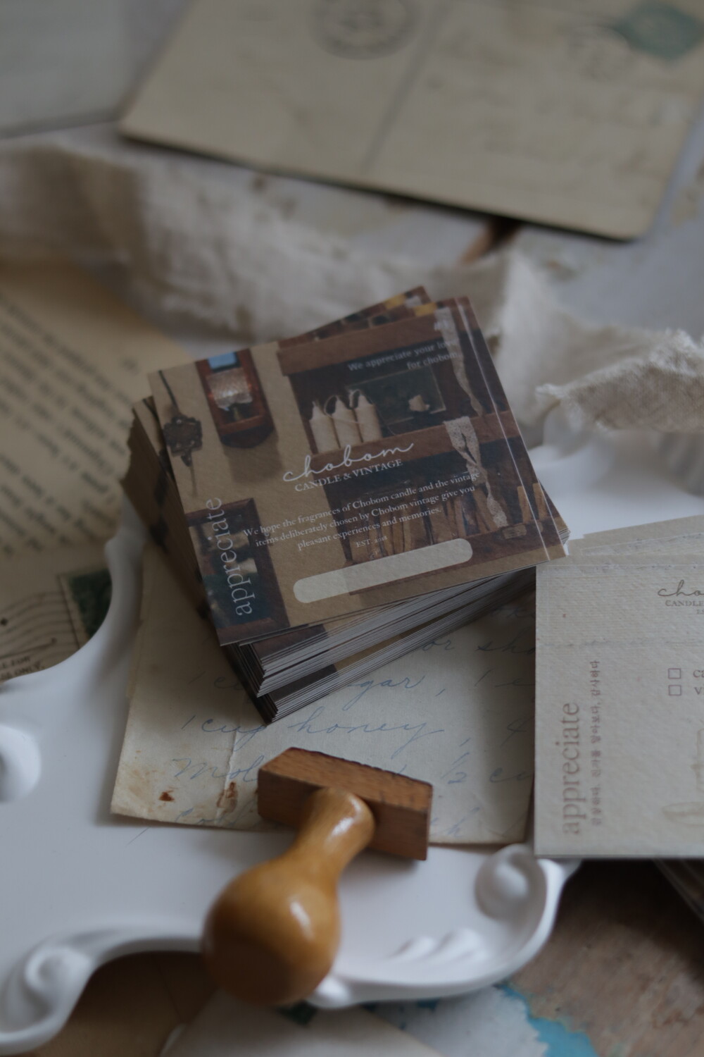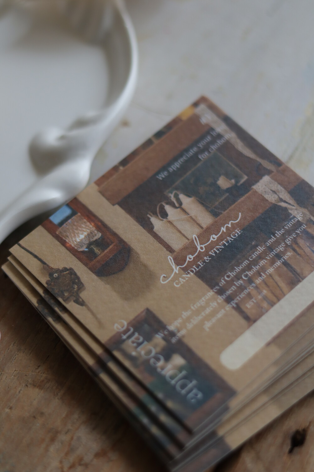 초봄 빈티지상점의 모습이 담겨있는 감사카드입니다.