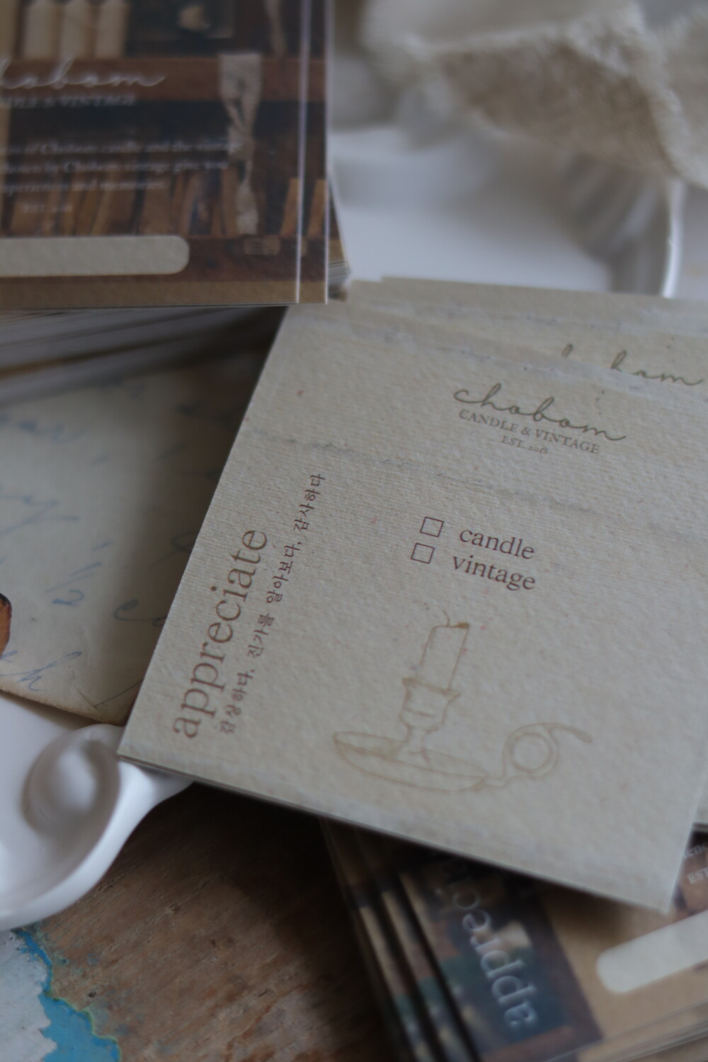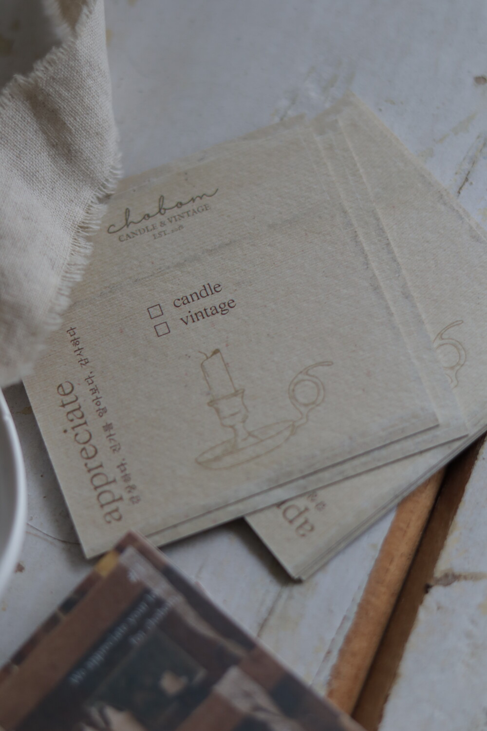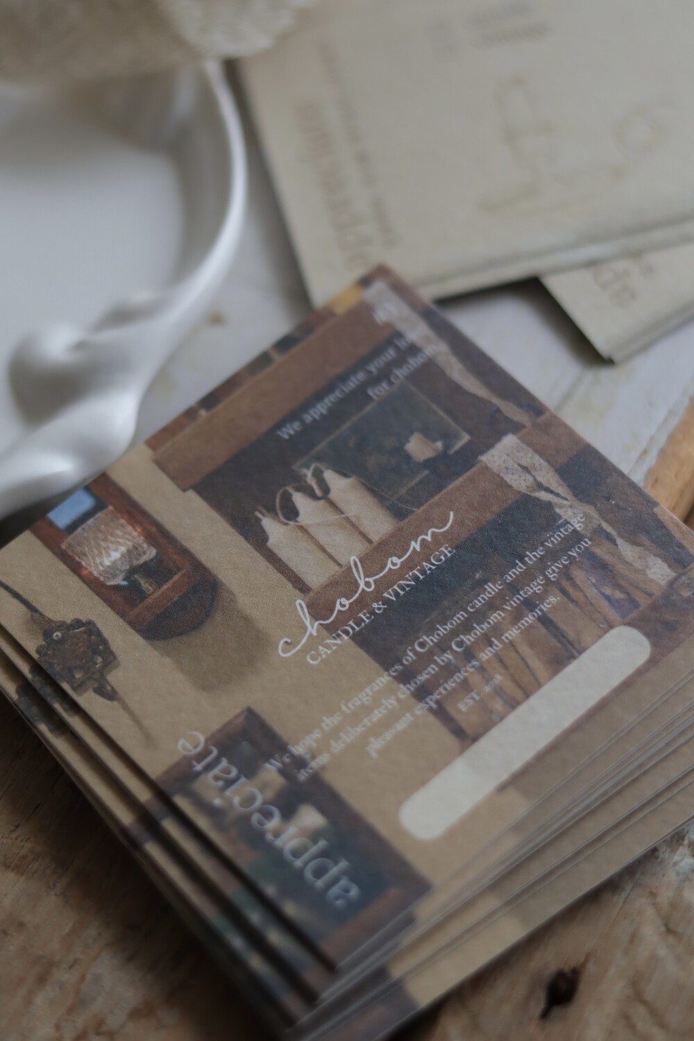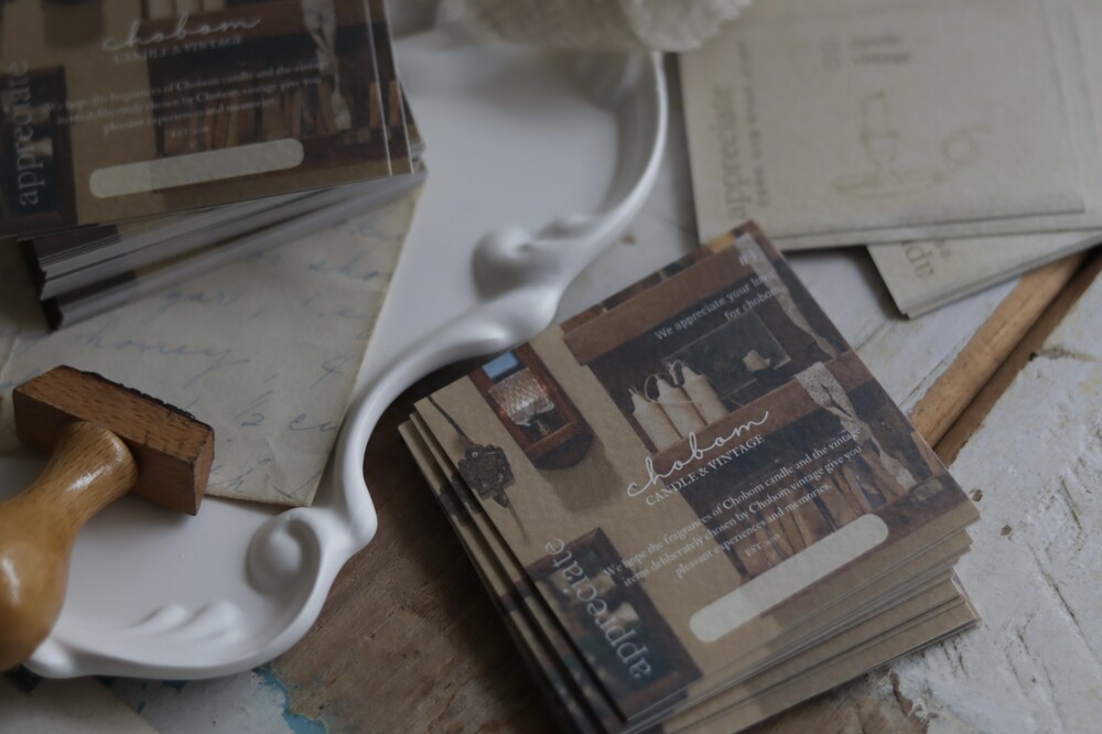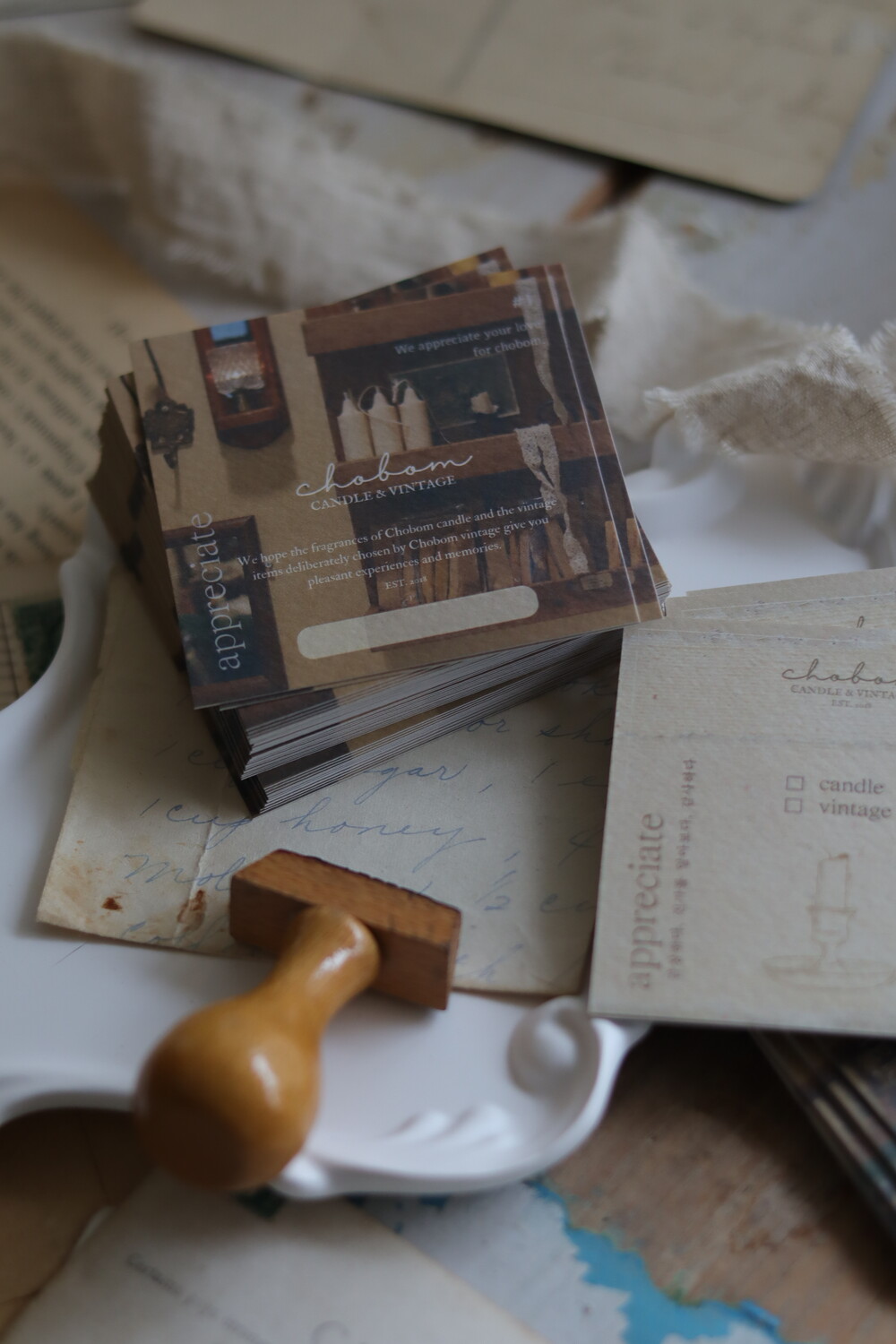 초봄 빈티지상점의 모습이 담겨있는 감사카드입니다.