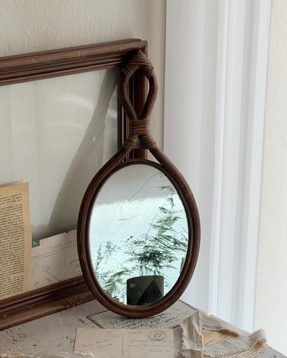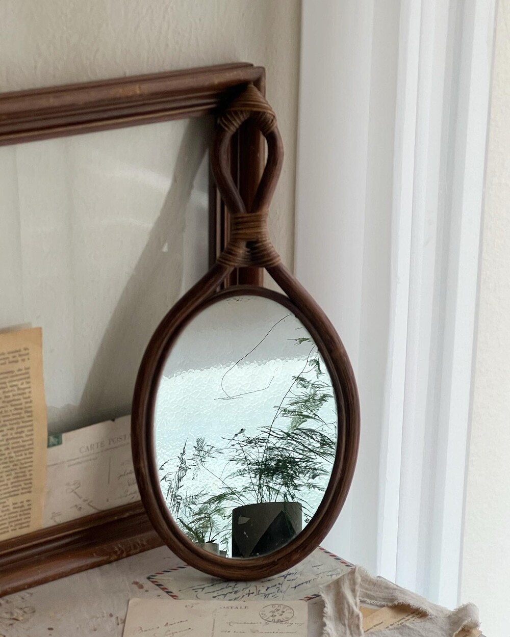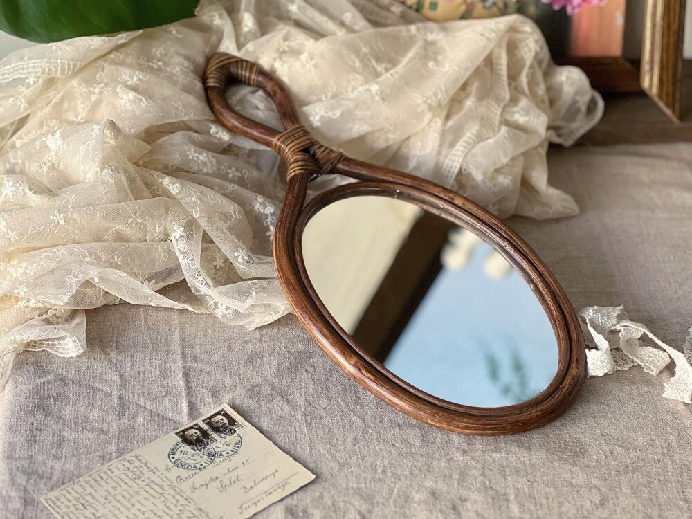 1960' France vintage rattan mirror [빈티지 라탄 거울]