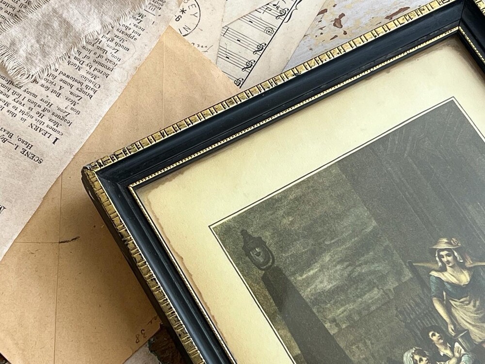 오래된 빈티지 액자라서 상단 양쪽 그림에 물먹은 세월감 보이는 점 안내드립니다.