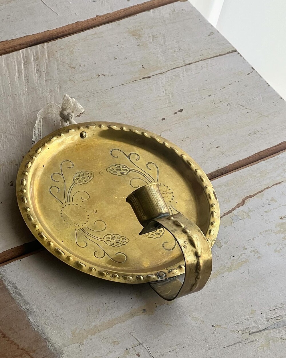 얇은 황동 바디를 가지고 있는 빈티지 브라스 벽촛대입니다.