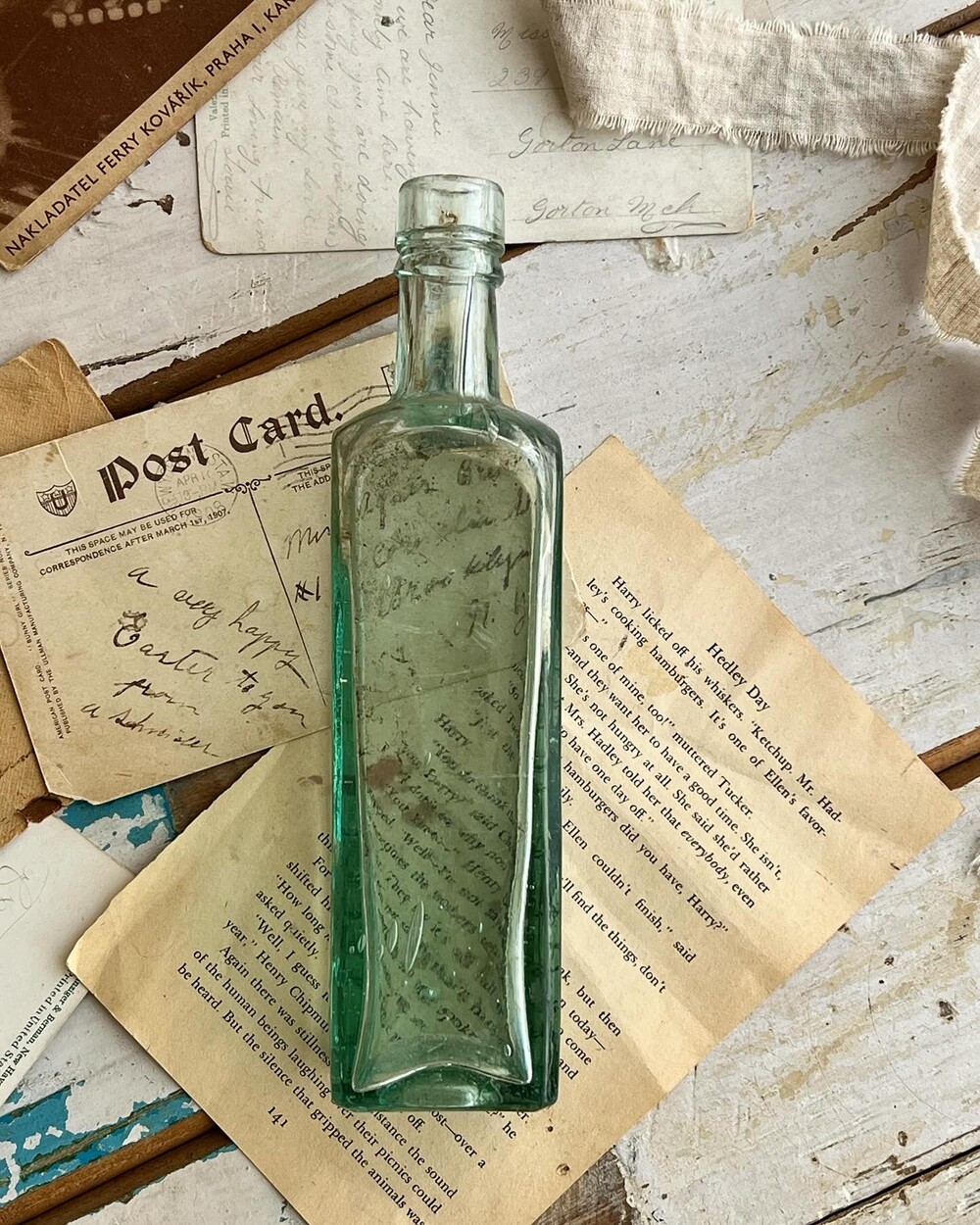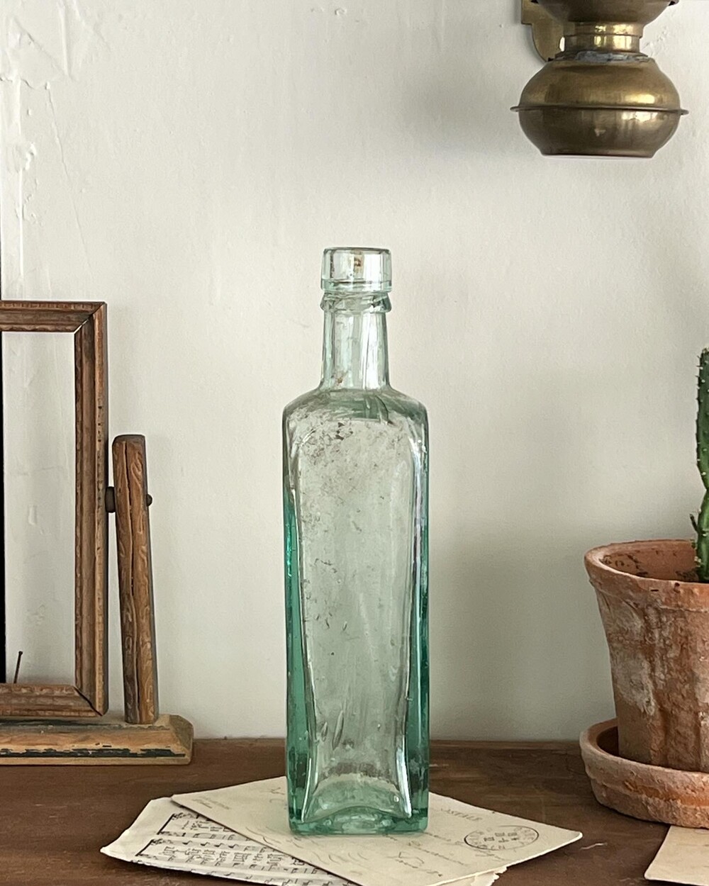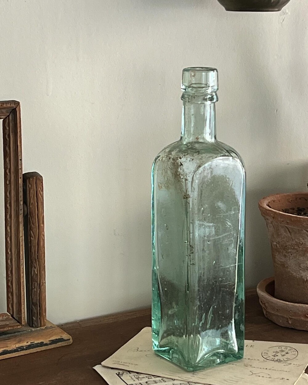 밝고 투명한 청록색감을 가지고 있는 빈티지 유리병 소개드려요.