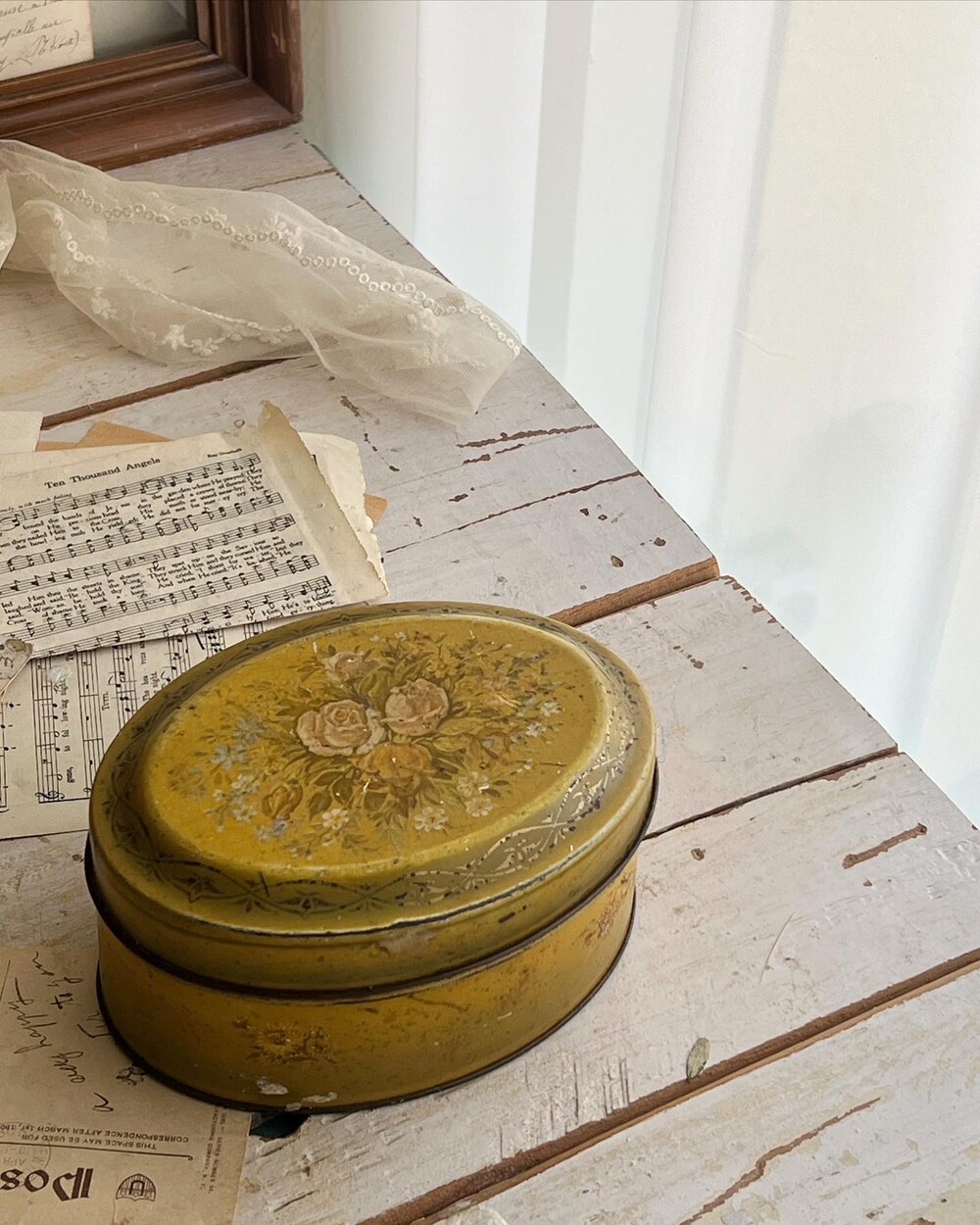 England vintage yellow tin case [영국 빈티지 옐로우 틴 케이스]