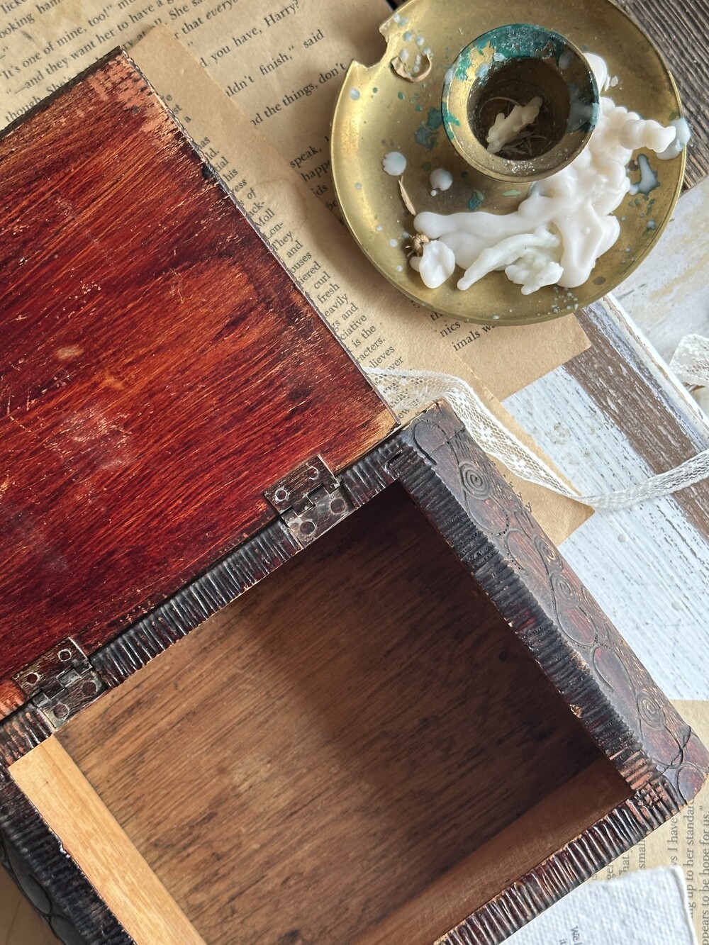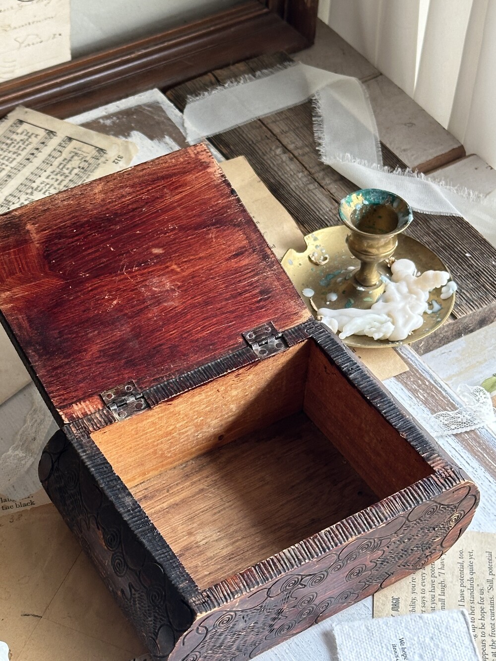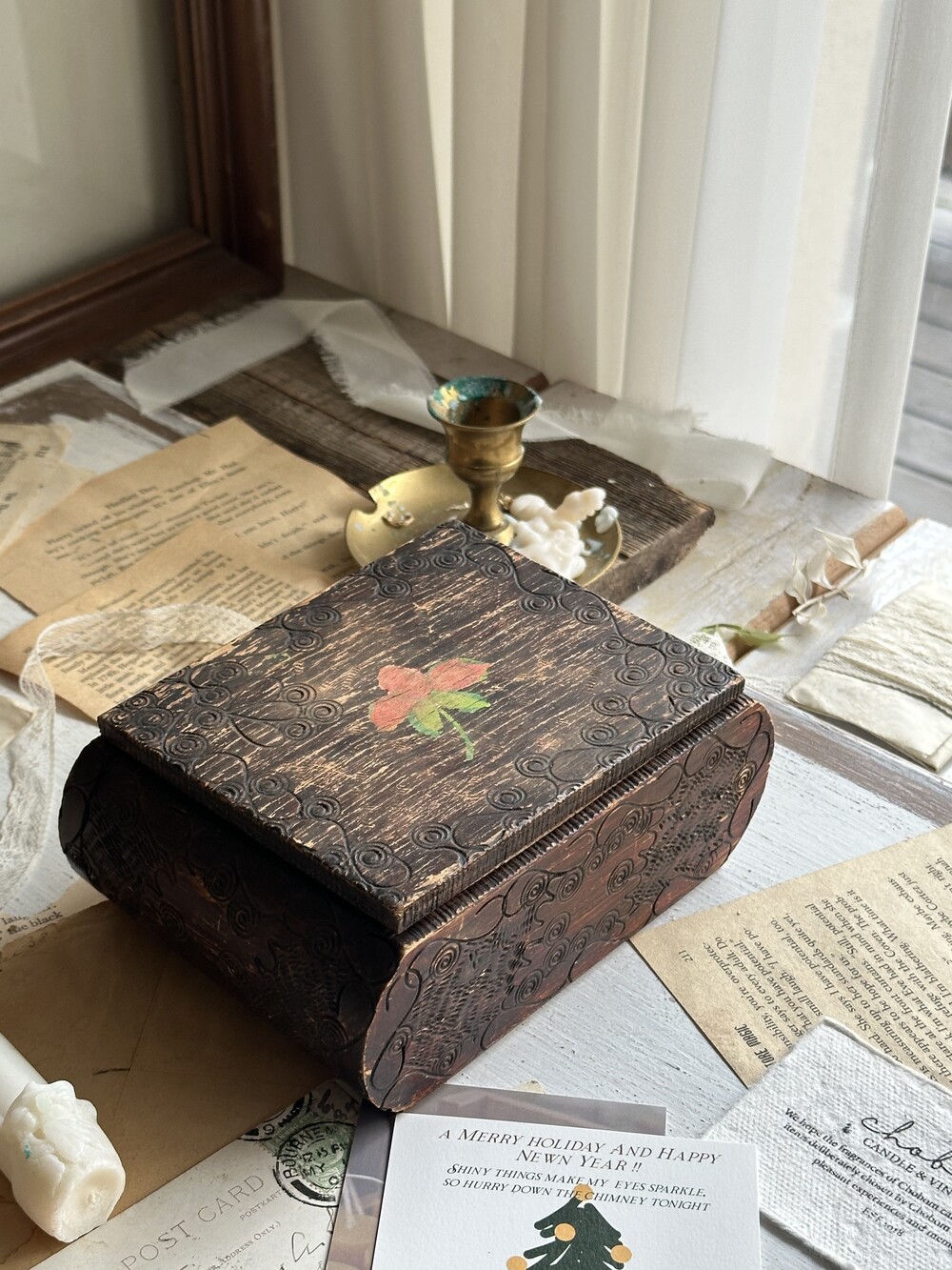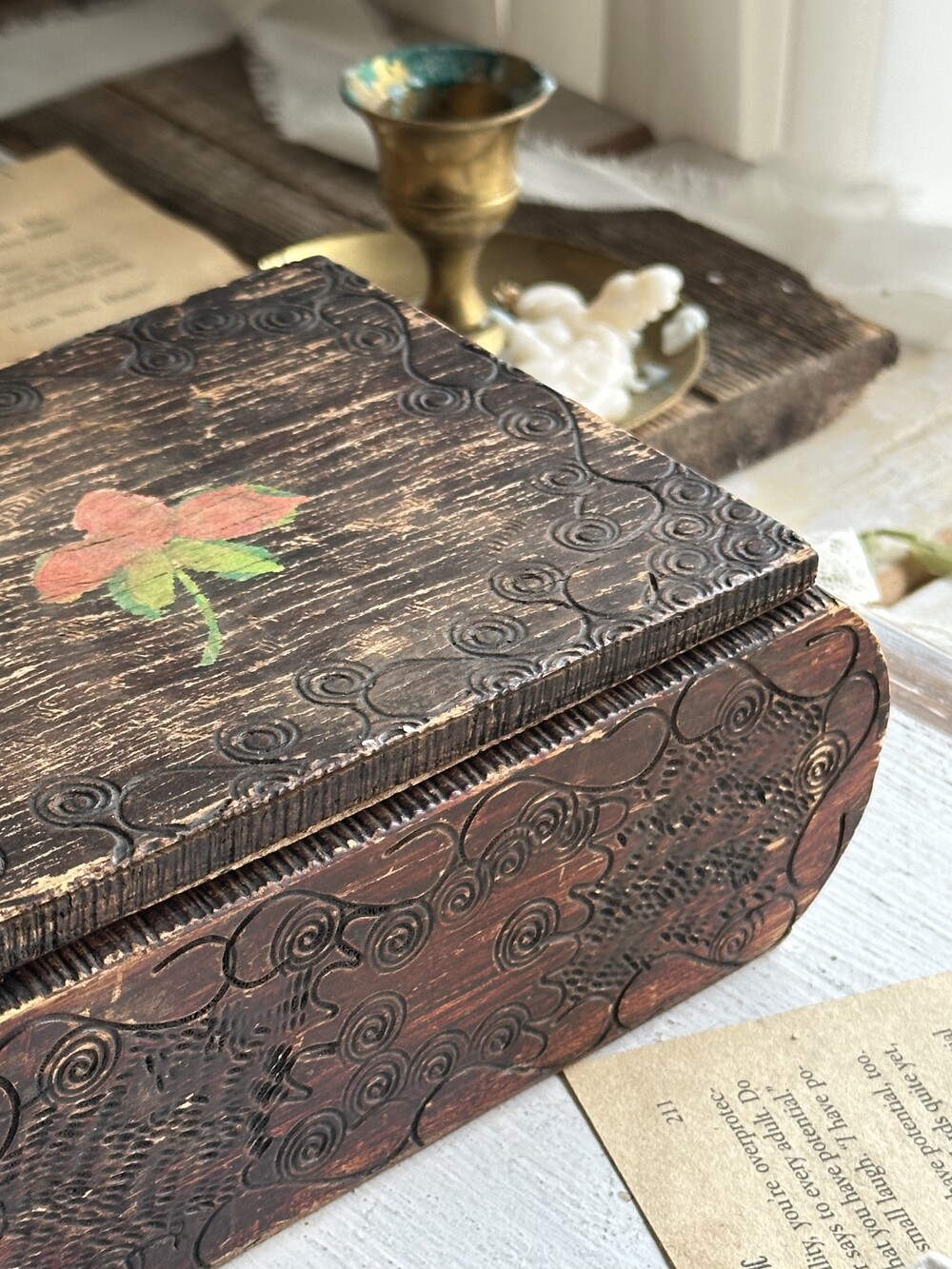 vintage hand carving wood box [빈티지 핸드 카빙 우드 박스]