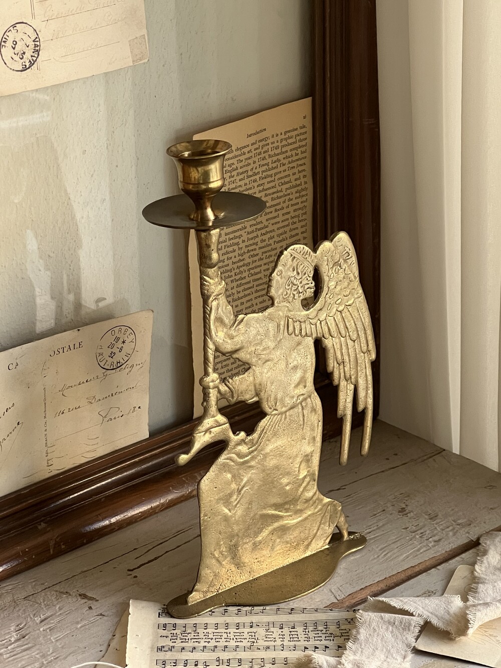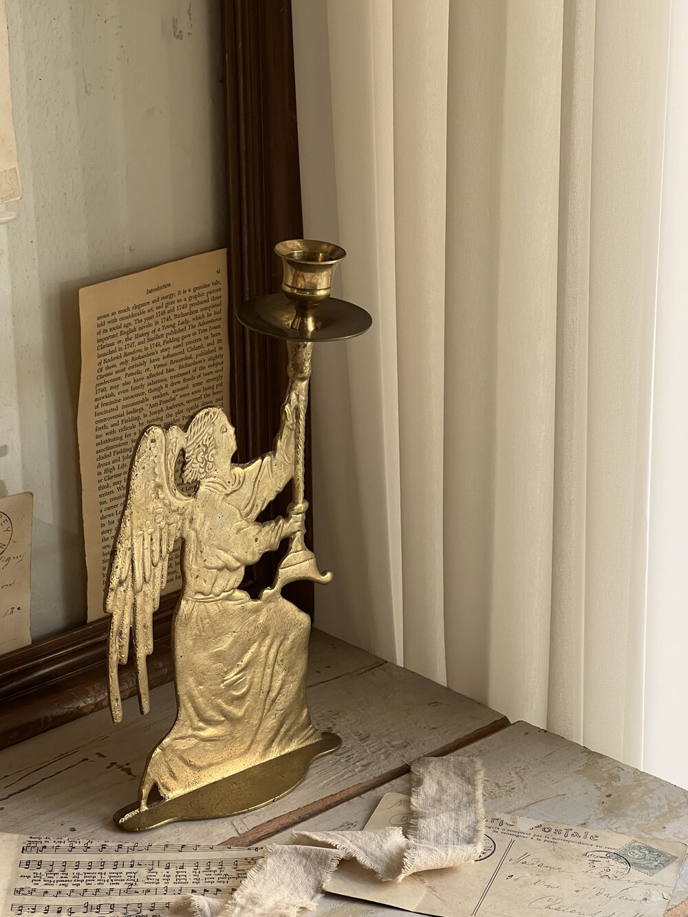 vintage brass angel candlestick [빈티지 황도 천사 촛대]