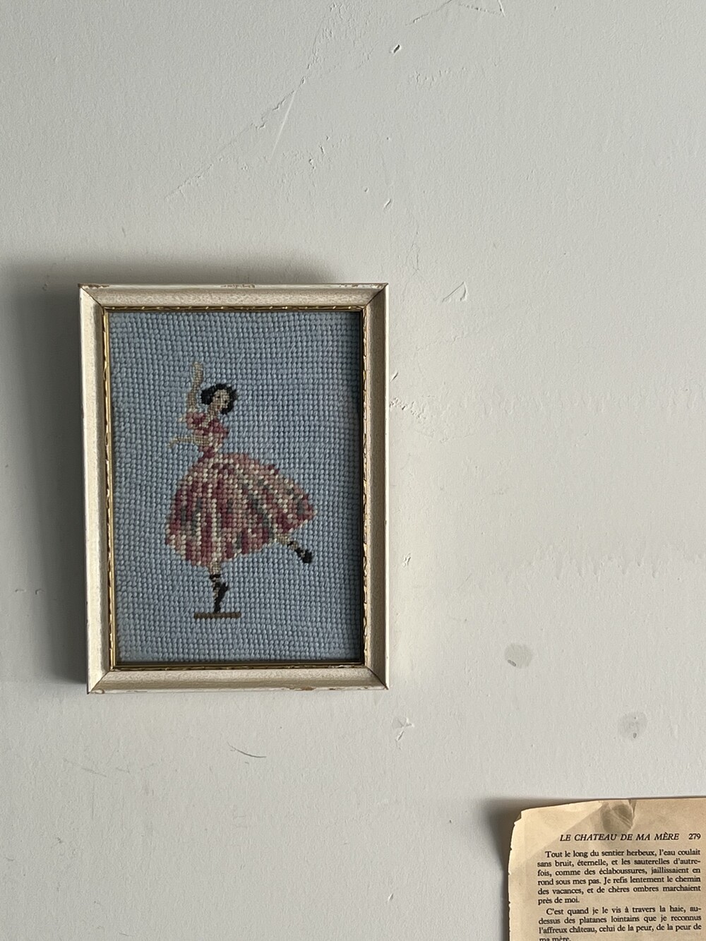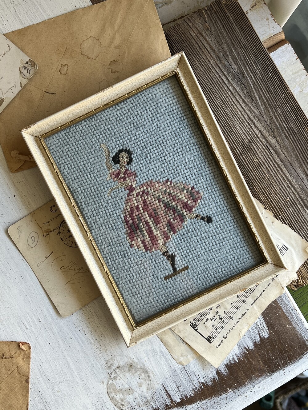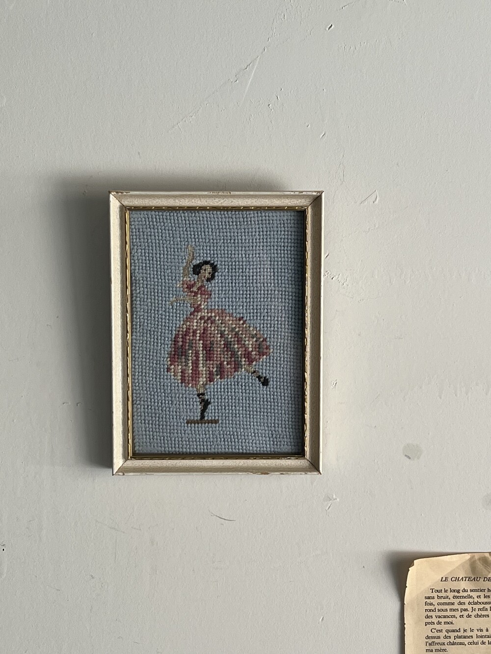 vintage needlepoint ballerina wood frame [빈티지 자수 발레리나 우드 액자]